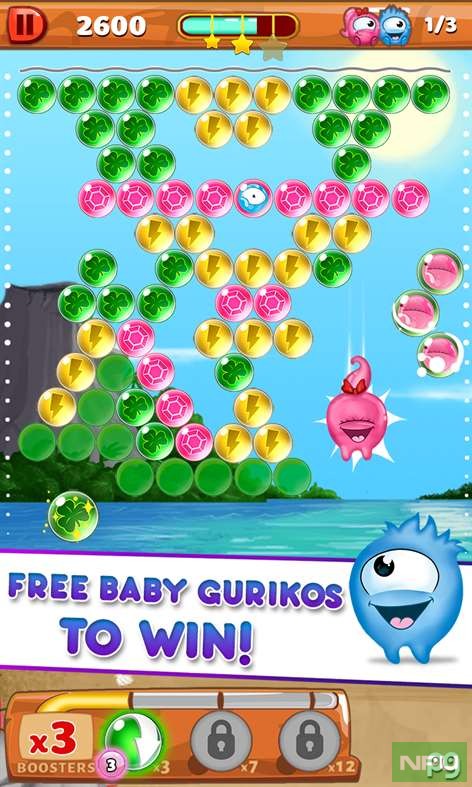 Enjoy saving all these cute creatures called Gurikos from the evil hands of Cosmos. The baby Gurikos are trapped in bubbles you have to explode!