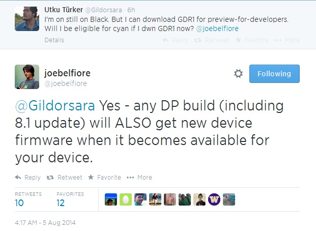 Joe Belfiore has now confirmed what we have been saying all along. No need to roll back if you are running developers preview version of Windows Phone and you should get the device firmware ( Read Lumia Cyan ) when it becomes available.