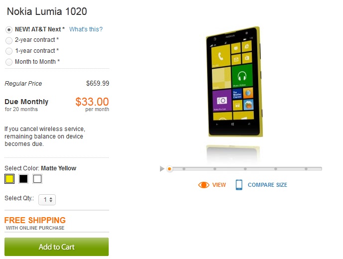 For those who wanted to have Lumia 1020 from AT&T but that initial price of $299 for 2-year contract was an issue, can now have the device in 22 monthly installments of $33. This is possible under AT&T’s Next plan. Users can change their devices in one year under this plan. The overall cost paid under this plan may be more than the subsidized plans but this may encourage many who are reluctant to shell $299 as down payment.