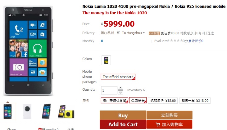 Quick heads-up!! Nokia’s latest awesome 41 MP camera wielding smartphone Lumia 1020 has now gone on pre-order at T-Mall in China. Price is Yuan 5999 which translates to USD 980. Don’t get shocked, after all Nokia says, “Lumia 1020” is not for everyone. For comparison sake though Lumia 920 was priced Yuan 4999 when it was launched. Also, this price for Lumia 1020 is at T-Mall and hence we expect the official price to be a bit less than this, though in past T-Mall pricing has been accurate :).