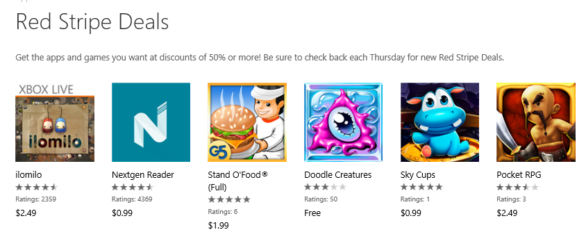Red Stripe Deals for this week bring Nextgen Reader for $0.99, ilomilo for $2.49 and Doodle Creatures (free).