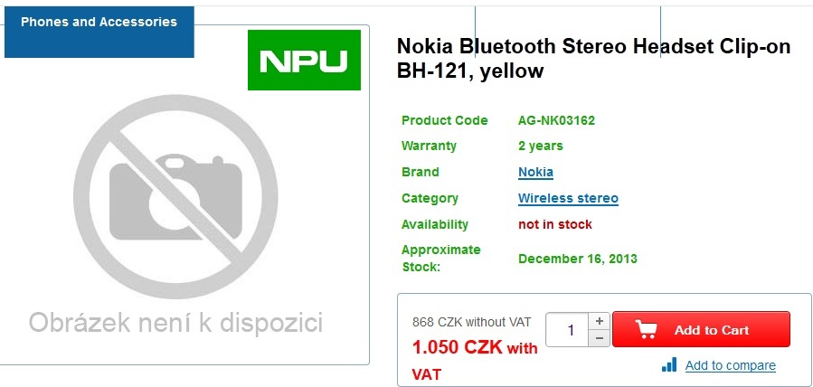 Aikon tipped us with a tweet which comes from “Baidu” and claims that Nokia Guru is actually Bluetooth Stereo Headset BH-121 with NFC. After exploring a bit we found full drawings of the BH-121 from FCC as can be seen above. Also, many retailers are listing BH-121 with delivery date of 16th December 2013 in Czech Republic. The pricing is also revealed to be around 1050 CZK which converts to 54 USD.