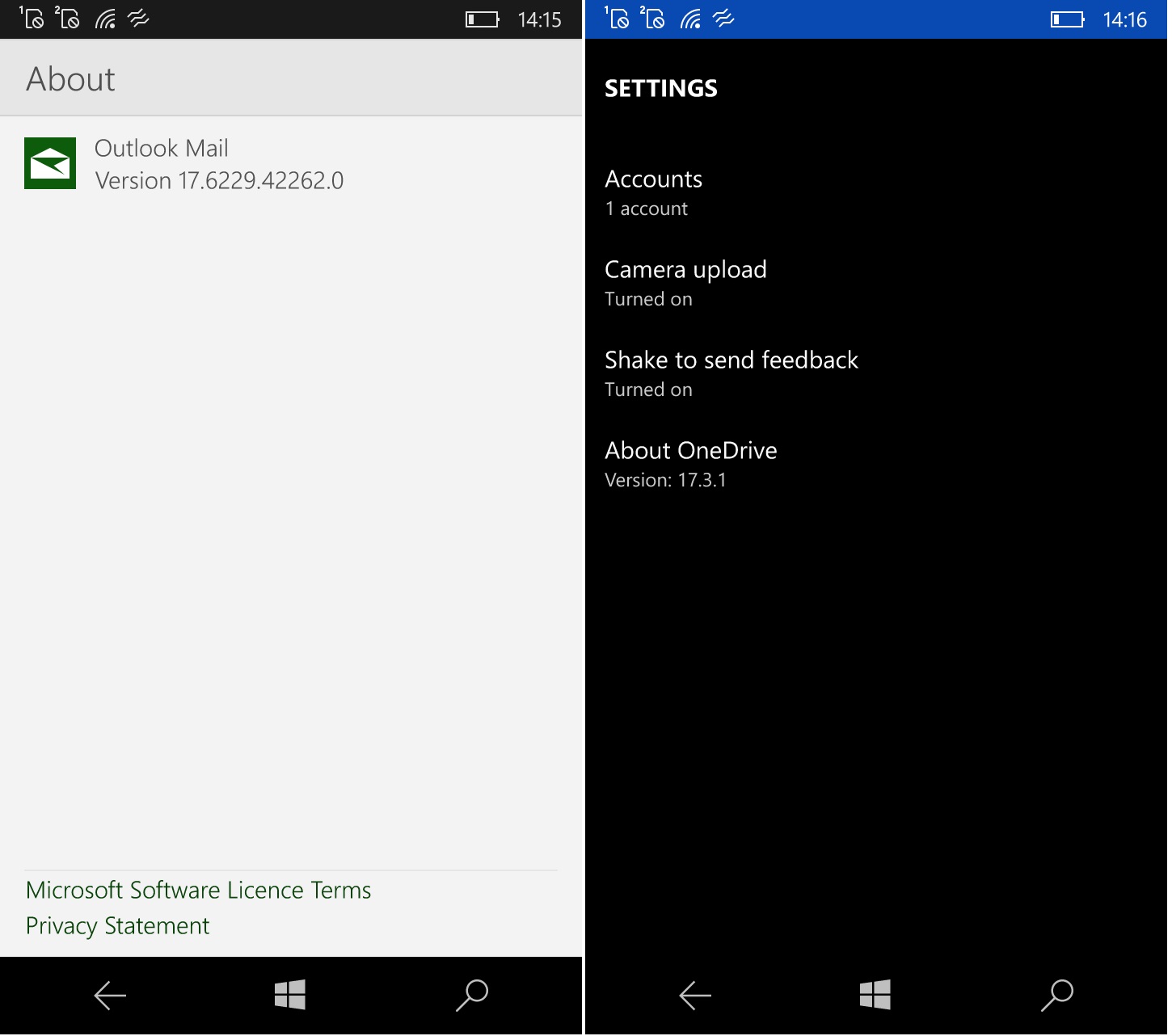 Lots of apps have seen updates on Windows 10 Mobile. OneDrive, Xbox, Mail & Calendar and Voice-Recorder have been updated to new versions. As can be seen in the screenshots,