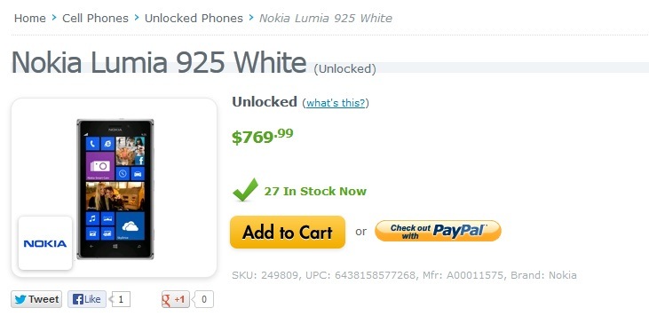 In case, you are one of those who would like to be the earliest to lay their hands on Nokia’s brand new Lumia 925, then here is your deal!! Expansys USA has got White unlocked Lumia 925 in stock now and the price is expectedly steep at $769. But that’s the way it will be for sometime, if you want to buy it unlocked in US. Otherwise you need to go with T-Mobile contract and may need to wait for 1-2 weeks more.