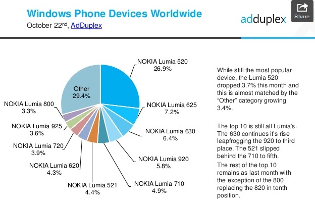 Lumia 630 has continued to rise and now accounts for 6.4% of Windows Phone share on its own.